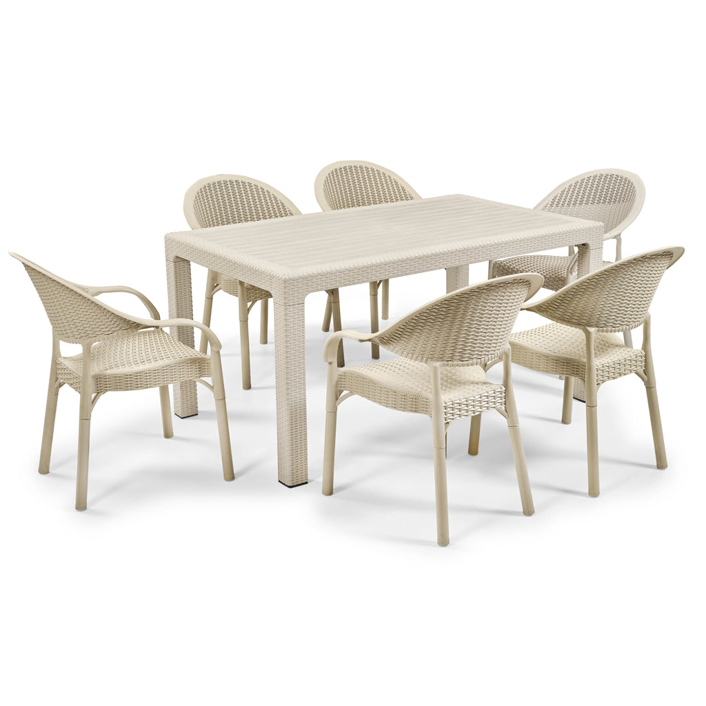 6 adet ergonomik tasarımlı bambu rattan koltuktan oluşur.