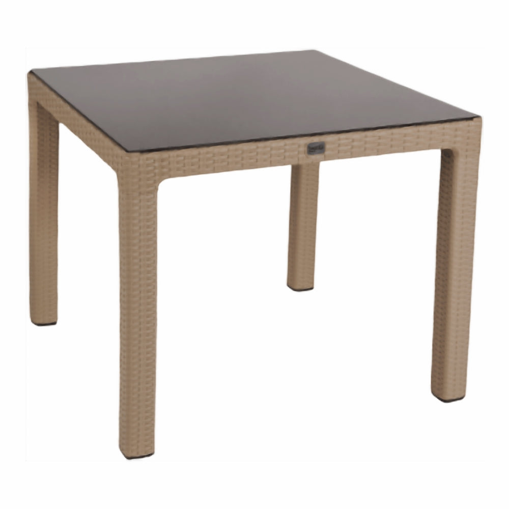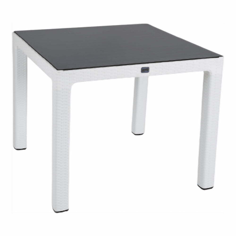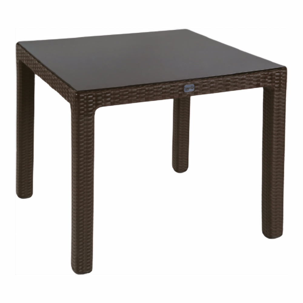 Gövde ve ayakları özel kompaund takviyeli polipropilen hammaddeden enjeksiyon tekniğiyle üretilen, (90*90*73,5 cm.) ölçülerinde, köşelerden geçme ayaklı kare bir masa çeşidimizdir. Tabla ve ayaklar rattan tasarımlı olup, ayaklar yükseklik seviye ayar vidalıdır ve kolayca sökülüp takılabilmektedir. Tüm hava şartlarına dayanıklı olması nedeniyle iç ve dış mekanlarda kullanıma uygundur.