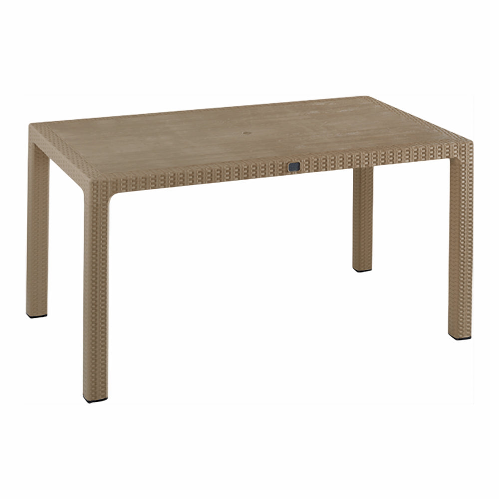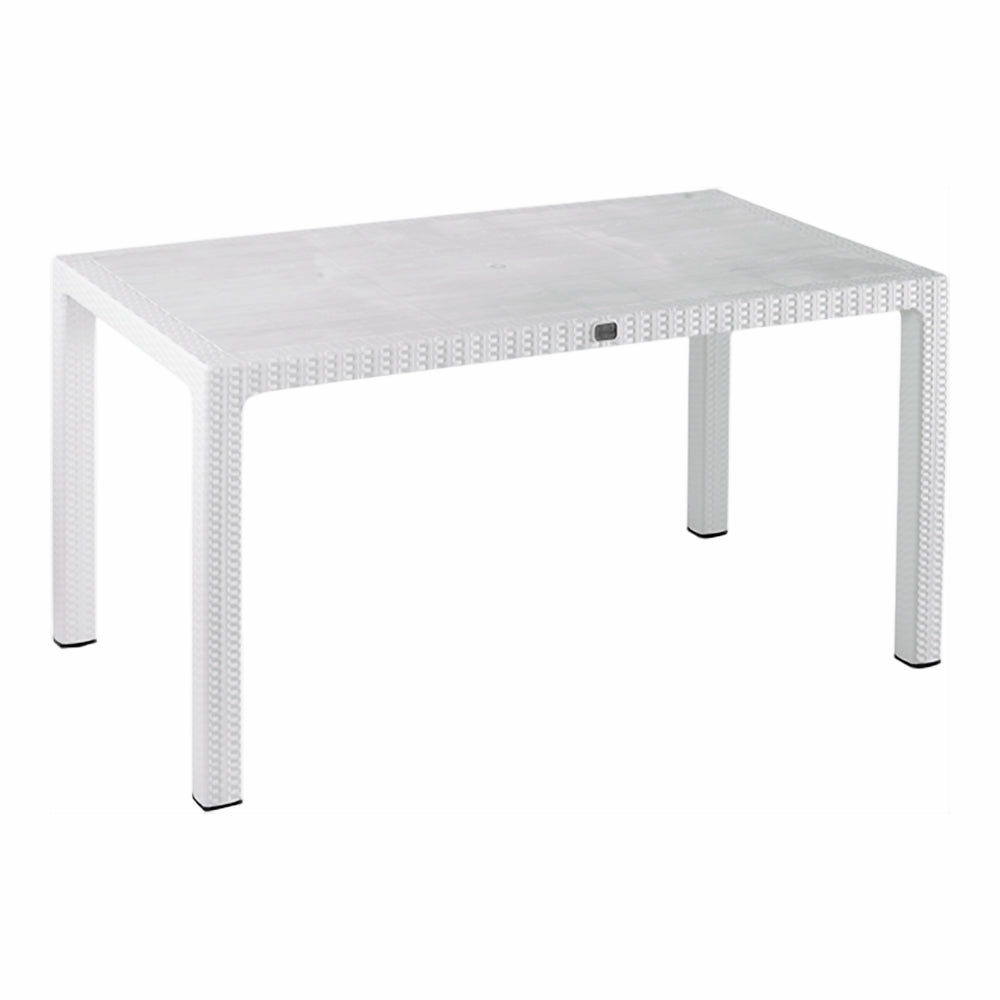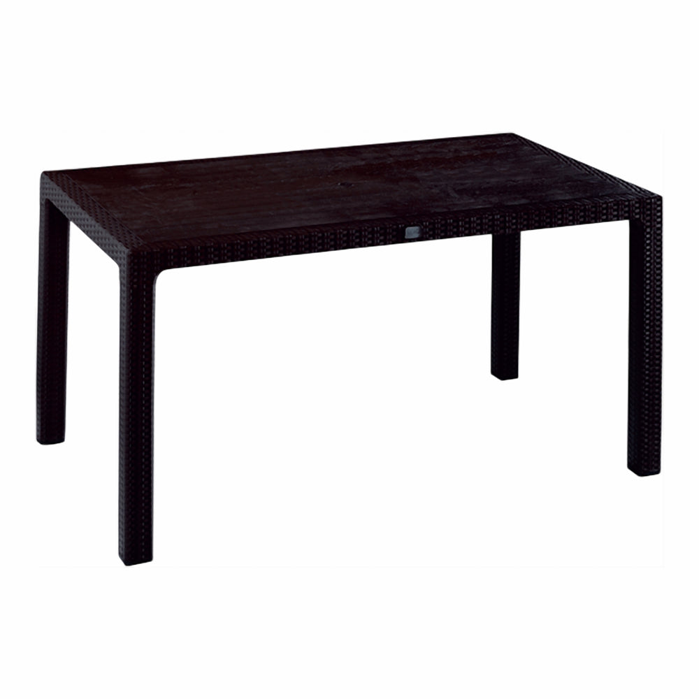 Gövde ve ayakları özel kompaund takviyeli polipropilen hammaddeden enjeksiyon tekniğiyle üretilen (90*150*73,5 cm.) ölçülerinde, köşelerden geçme ayaklı dikdörtgen bir masa çeşidimizdir. Tabla ve ayaklar rattan tasarımlı olup, ayaklar yükseklik seviye ayar vidalıdır. Ayrıca masa tablasının zaman içerisinde eğilmesini önlemek için kalıp içerisine metal takviye parçası konulup üretilmektedir. Ayaklar kolayca sökülüp takılabilmektedir, tüm hava şartlarına dayanıklı olması nedeniyle iç ve dış mekanlarda kullanıma uygundur.